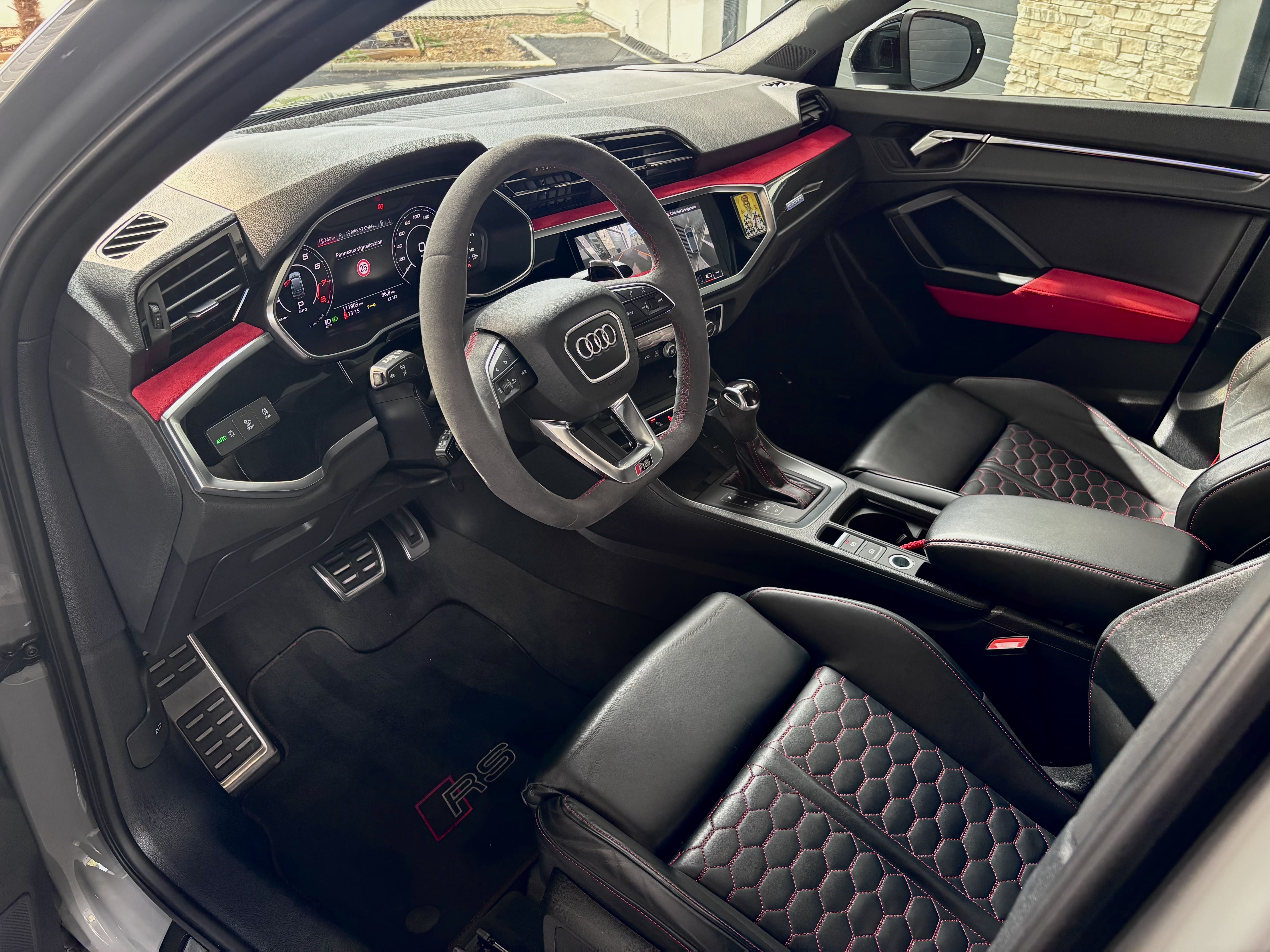 - Volant RS en alcantara avec surpiqûres rouges et bouton RS Mode