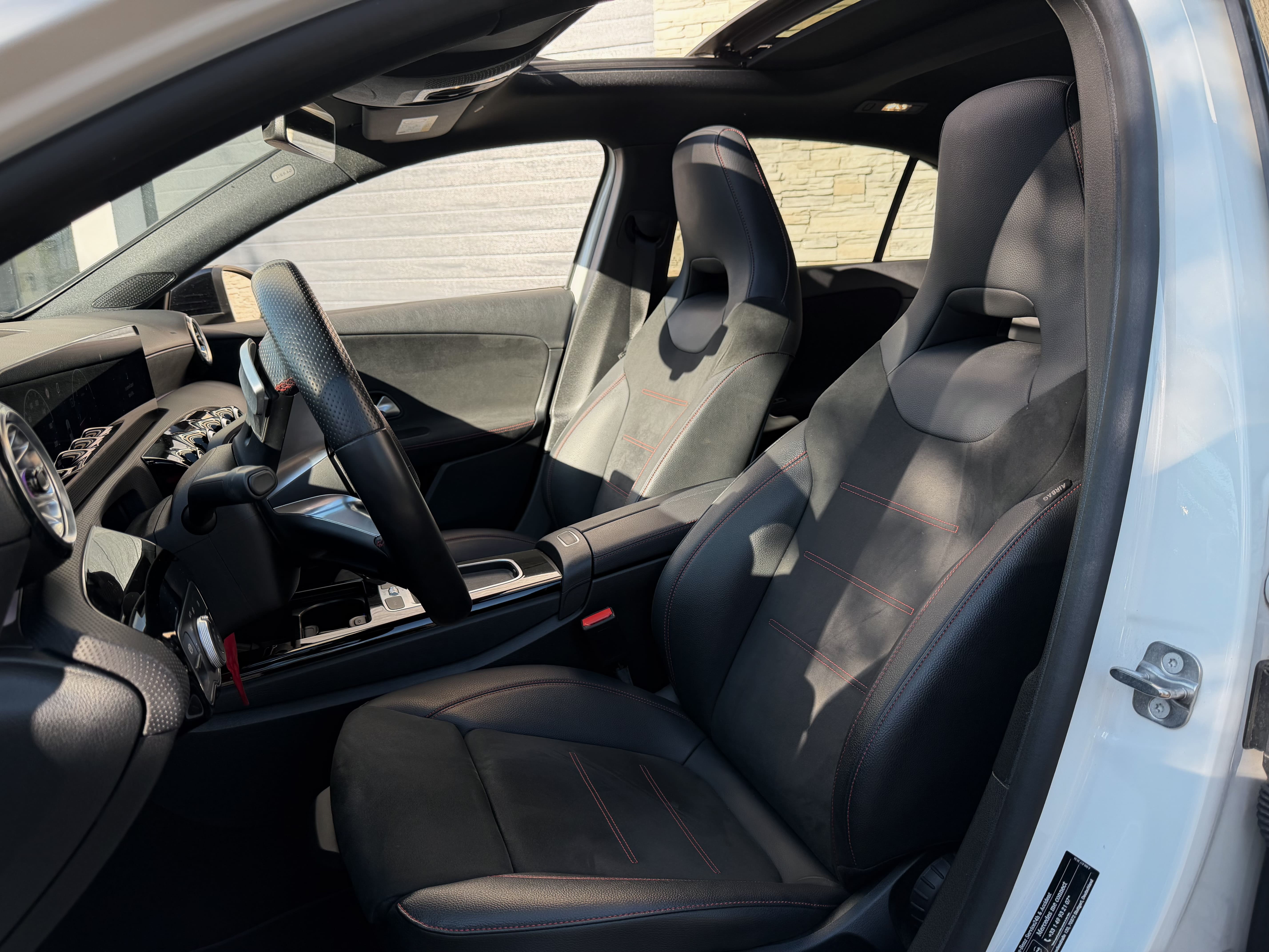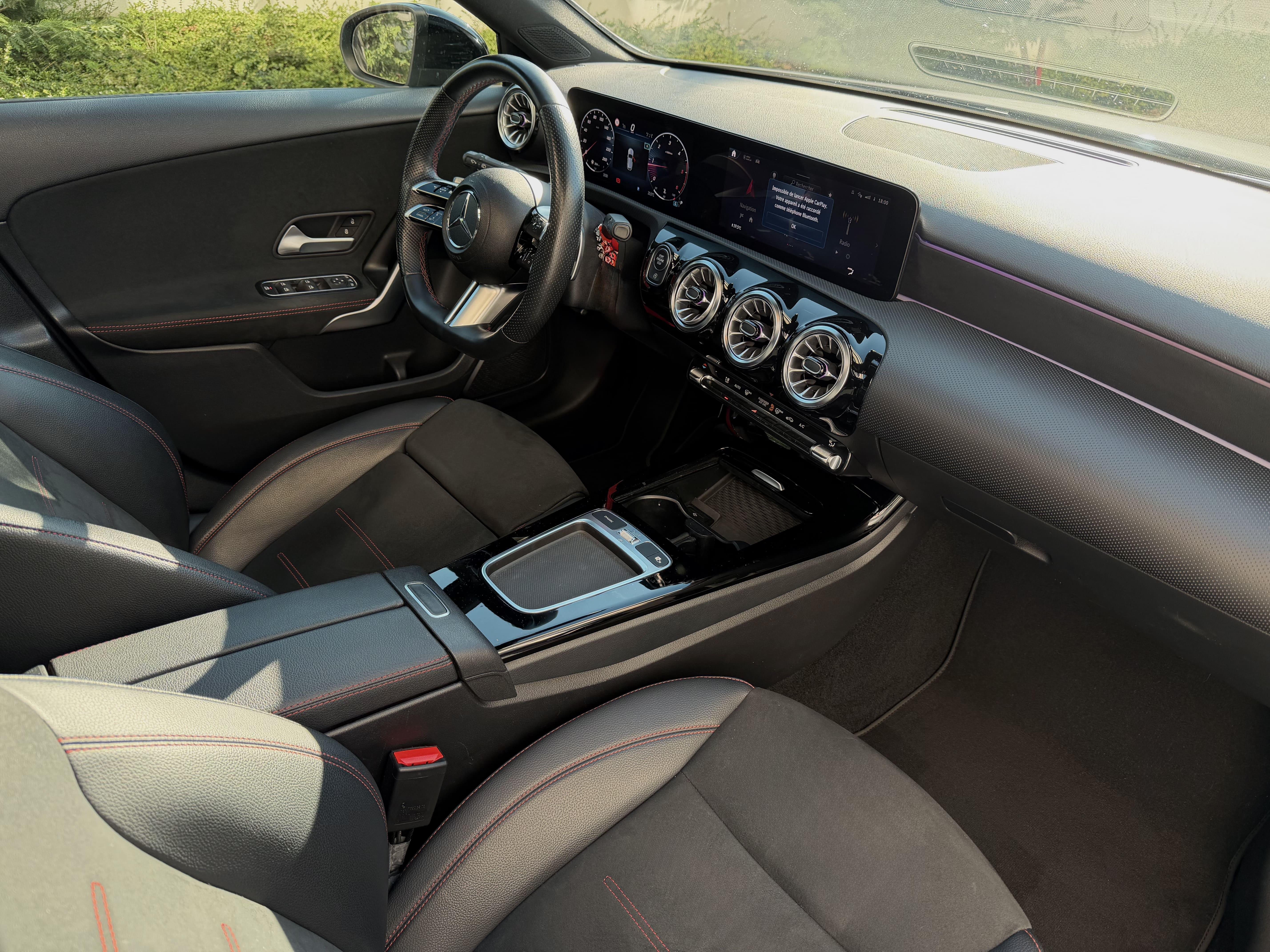 Sellerie cuir / Alcantara avec surpiqûres rouges