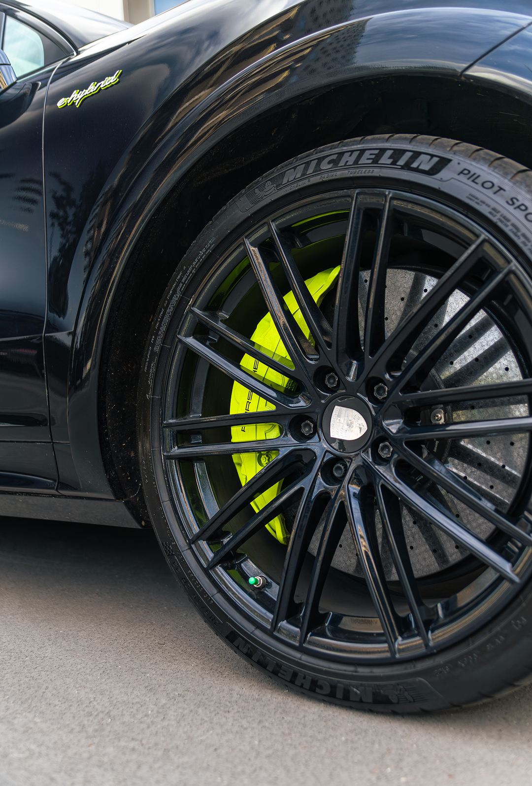 - Étriers de frein fluo spécifiques Turbo S E-Hybrid Suspension pneumatique adaptative avec PASM